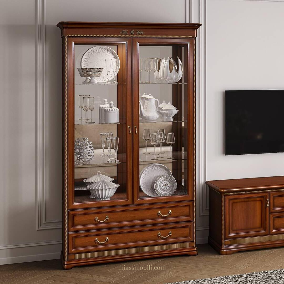 Шкаф 2-х дв. для посуды с зеркалом Joconda орех купить в Омске