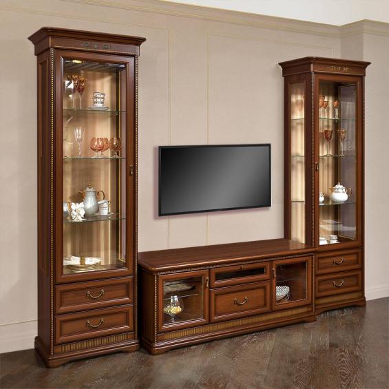 Тумба ТВ со стеклянными дверками Joconda орех купить в Омске