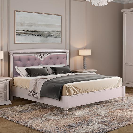 Кровать двойная Lorenzo пудра с мягкой головной и без ножной спинки Lorenzo пудра купить в Омске