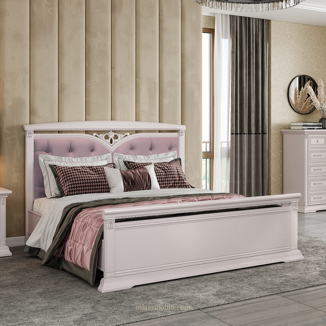 Кровать двойная Lorenzo пудра с мягкой головной и ножной спинкой Lorenzo пудра купить в Омске