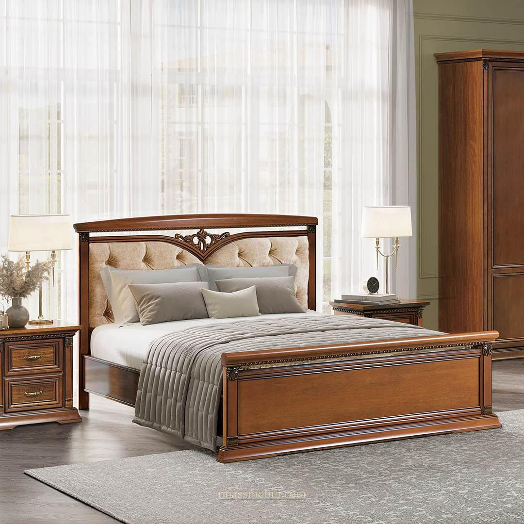 Кровать двойная Lorenzo вишня с кутанной головной и ножной спинкой Кровати купить в Омске